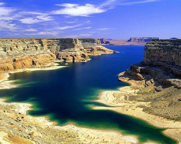Водохранилище Пауэлл было создано при помощи дамбы в каньоне Глен. Озеро Пауэлл образовалось в результате борьбы за каптаж Национального Памятника Динозавр (Dinosaur National Monument).