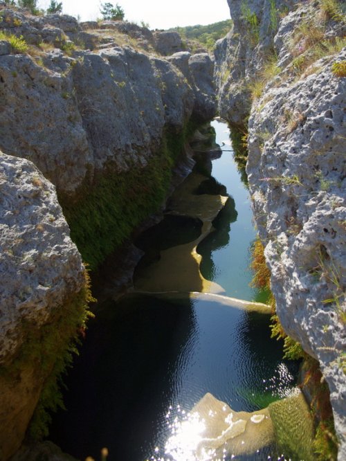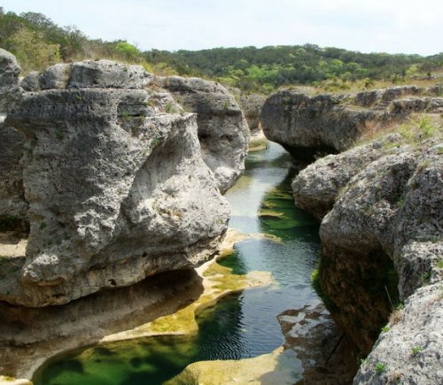 Окружающая ущелье загородная местность центрального Техаса характеризуется наклонными известняковыми холмами и используется для выпаса скота. В неглубоком иловатом суглинке растут дуб виргинский, можжевельник и мескитовое дерево.