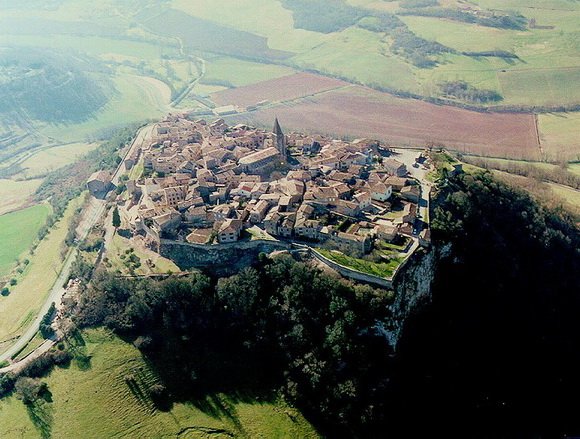Сама деревня была основана в 10 веке монахами-бенедиктинцами. Первый замок был разрушен после вступления в силу Договора в Мо (Treaty of Meaux-Paris) в 1229 году, но деревня так и осталась оплотом. Хотя в 13-м и 14-м веке эту деревню осаждали несколько раз, её так и не смогли взять приступом.