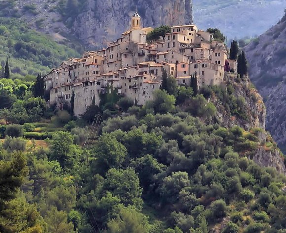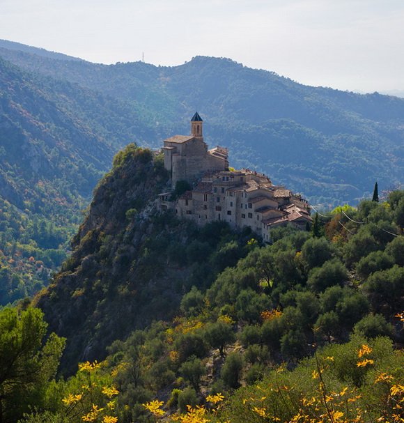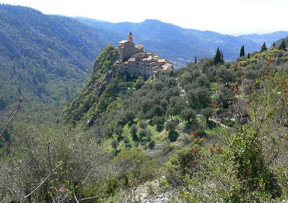 По мере того как вы по узкой дороге приближаетесь к деревне, на неё открывается очень необычный и прекрасный вид, который также является одним из преимуществ посещения этого места и который разительно контрастирует с побережьем Ривьеры на юге, которое остаётся позади вас.