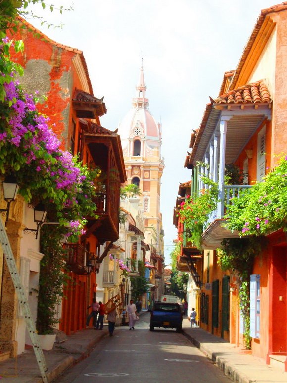 Прекрасная улица, изображённая на фотографии выше, расположена в старой части города Картахена. Архитектура является одним из главных атрибутов Картахена, в городе множество замечательных колониальных домов и военных зданий, а также современная туристическая инфраструктура, позволяющая гостям города по достоинству оценить его историческое развитие.