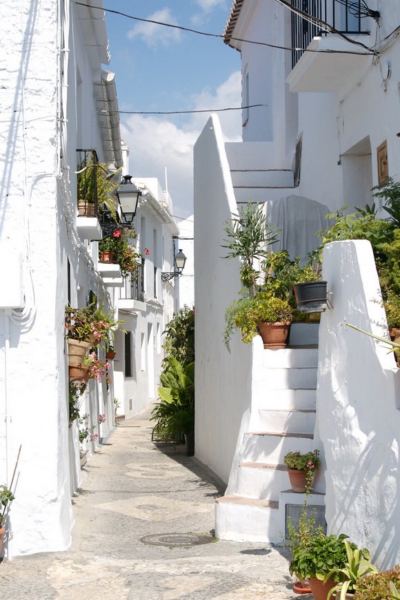 «Белая улица» на фотографии, находится в Фрихилиане - маленьком, андалузском городе. Город состоит из крутых мощёных переулков, проходящих мимо белых домов, пестрящих цветами.