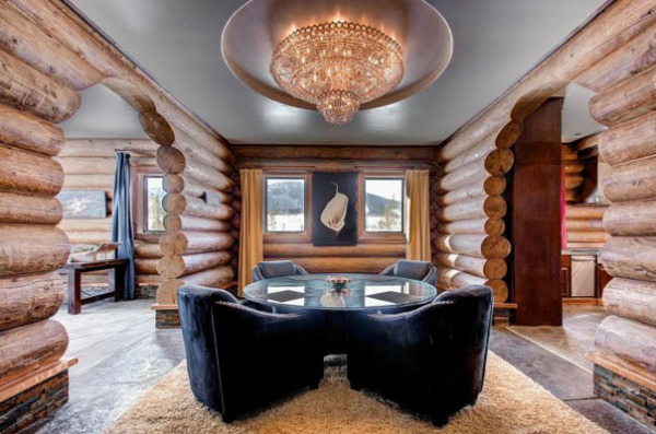 Гостиная идеальна для отдыха и расслабления. В долгие зимние вечера можно устроиться у камина и выпить чуть коньяка и выкурить кубинскую сигару. Роскошь в доме просто поражает, особенно люстры. Их стоимость 2,7 миллиона долларов.