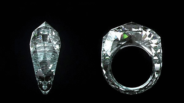 Кольцо, которое на 100% является бриллиантовым, принадлежит женевскому ювелирному дому «Shawish». Дело в том, что украшение было изготовлено путём вырезания отверстия в драгоценном камне и представляет собой монолитное изделие с огранкой. Творение под названием «The World's Fist All Diamond Ring»весит ни много ни мало 150 карат, цена — $68 млн. Мохамеду Шавишу понадобился целый год, чтобы обработать алмаз. Швейцарский ювелир огранял алмаз при помощи специального лазера.