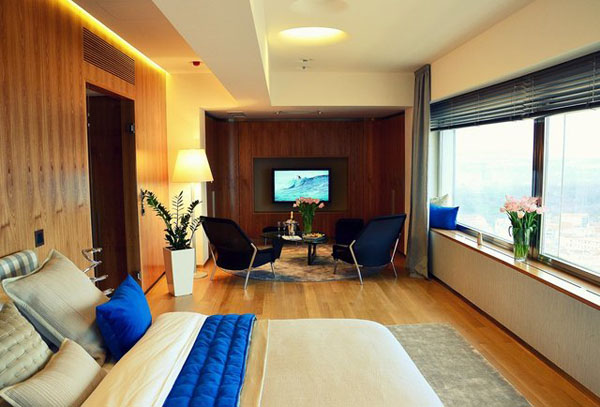 Этот номер люкс ‒ единственное место в городе, вид из окна которого не портит странно выглядящая телевизионная вышка. А всё потому, что он расположен на верху этой самой вышки, на высоте 65 метров. По отдельной спиральной лестнице из номера можно попасть прямо в ресторан и бар.