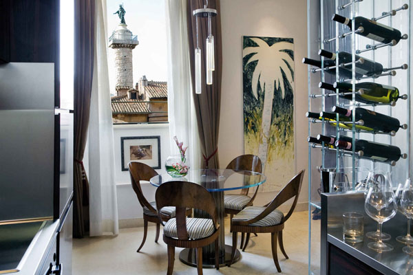 Удивительный номер расположен в доме, построенном в 17 веке, в самом центре Рима. Из каждого окна, даже в ванной, открывается потрясающий вид на город. Здесь есть всё для роскошной жизни – от первоклассного фарфора до серебра, которое редко у кого встретишь дома. У владельца отеля есть ещё и своя компания по производству оливкового масла, поэтому при отъезде он презентует постояльцам бутылочку лучшего масла.
