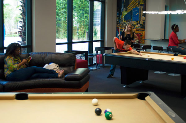 Студентам предоставляют услуги шаттла, доставляющего их в университет и обратно, а ещё забирающего их ночью из центра города в общежитие. В комплексе предусмотрена волейбольная площадка, корт для гольфа, пляж, зона для барбекю, огромный бассейн, конференц-зал. Жить в комнате можно одному, вдвоём, втроём и вчетвером.