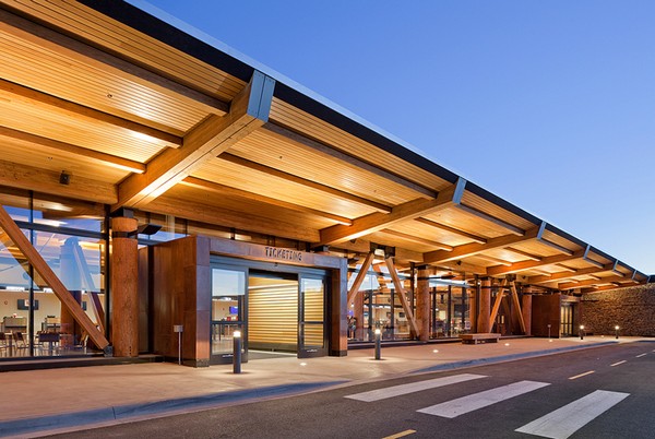 Этот терминал, построенный по проекту архитектурной компании Gensler, создан, преимущественно, из дерева, что весьма логично, учитывая наличие неподалеку знаменитого на весь мир природного парка. Так что в соответствующую атмосферу турист окунется сразу же по прибытию в Jackson Hole Airport.