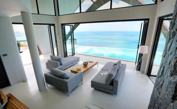 Открытая гостиная на первом этаже центрального корпуса оснащена 3D телевизором с плоским экраном, DVD и звуковой системой, огромным балконом и бассейном, визуально сливающимся с бескрайним морским горизонтом. Все эти достоинства делают виллу идеальным местом для любого вида мероприятий, будь то свадьба, юбилей, корпоративное событие или частный праздник для большой семьи.