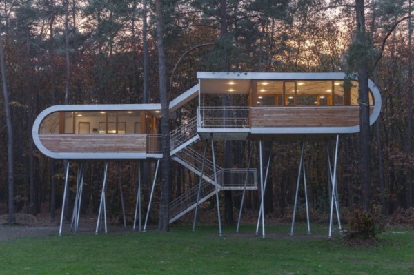 Архитектурная студия Baumraum разработала еще один удивительный дом-дерево, расположенный в лесах Бельгии. На этот раз архитекторы и дизайнеры не ограничились концептуальным гостевым домиком, а построили просторный «воздушный дом», где можно устраивать вечеринки или проводить время всей большой семьей.
