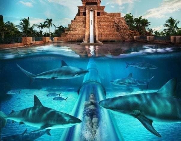 Главной темой аквапарка стала Атлантида и племя майя. Так, например, в аквапарке есть "Храм майя": горки, в виде тоннелей спускающиеся в залив с акулами, то есть без прямого контакта с хищниками. В принципе, любители экстремальных ощущений вряд ли найдут себе здесь занятие по душе, поскольку парк аттракционов в первую очередь предназначен для размеренного семейного отдыха. Даже 18-метровая водная горка "Прыжок веры" не успеет вызвать в вас прилив адреналина за две минуты своей продолжительности.