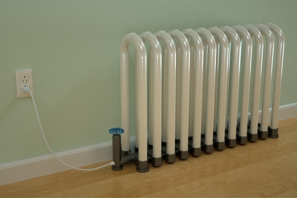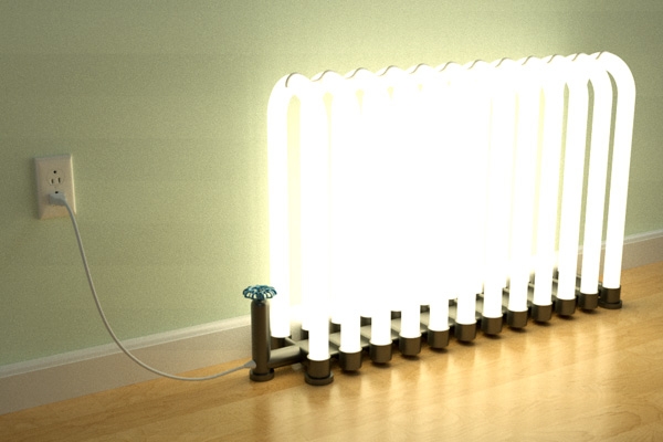 Необычная идея пришла в голову дизайнеру Steve Faletti. Он же и воплотил гениальную мысль в жизнь, подарив людям обогреватель и светильник в одной модели. Radiant Floor Lamp состоит из 12 люминесцентных ламп-радиаторов и оригинального выключателя в форме водопроводного крана. Подобная модель напомнит многим времена, когда для того, чтобы согреться, приходилось выпускать из батарей воздух и сливать застоявшуюся воду. Здесь конечно жидкости не предусмотрено, но греть светильник будет не хуже старой доброй батареи.