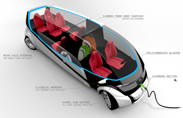 В сложенном состоянии автомобиль, разработанный Kenan Haliloglu, без труда сможет лавировать по узким улочкам и загруженным дорогам мегаполисов. При трансформации, его длина увеличивается почти в 2,5 раза, что позволяет создать пространство для нескольких рядов сидений и багажа. Автомобиль имеет две управляемые оси, что способствует хорошей управляемости, несмотря на длину кузова.