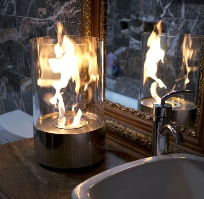 Современный и стильный камин, который с легкостью поместится на прикроватной тумбе или журнальном столике.