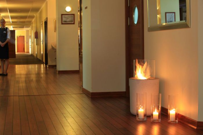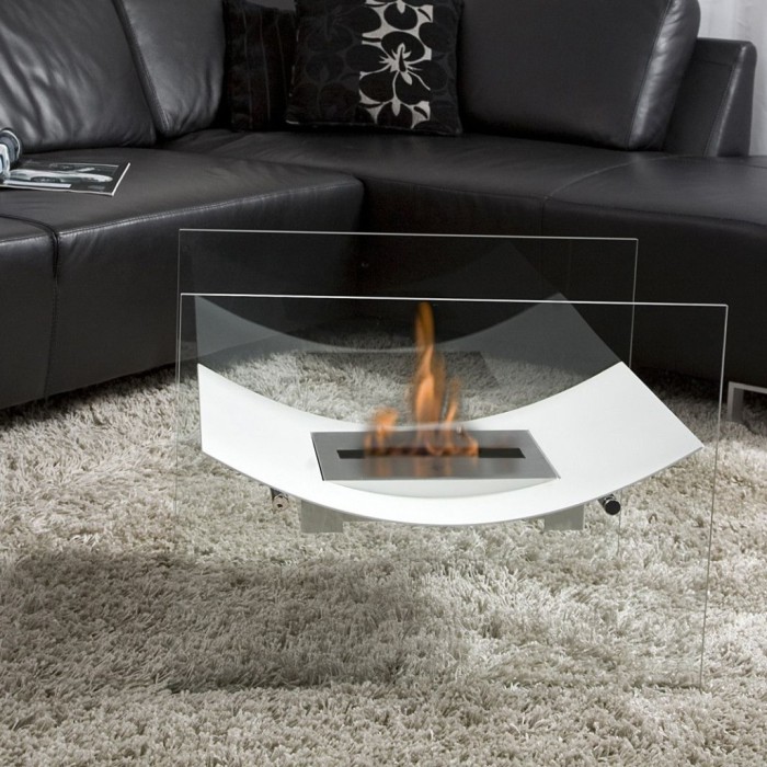 Потрясающий портативный камин, сделанный преимущественно из стекла.